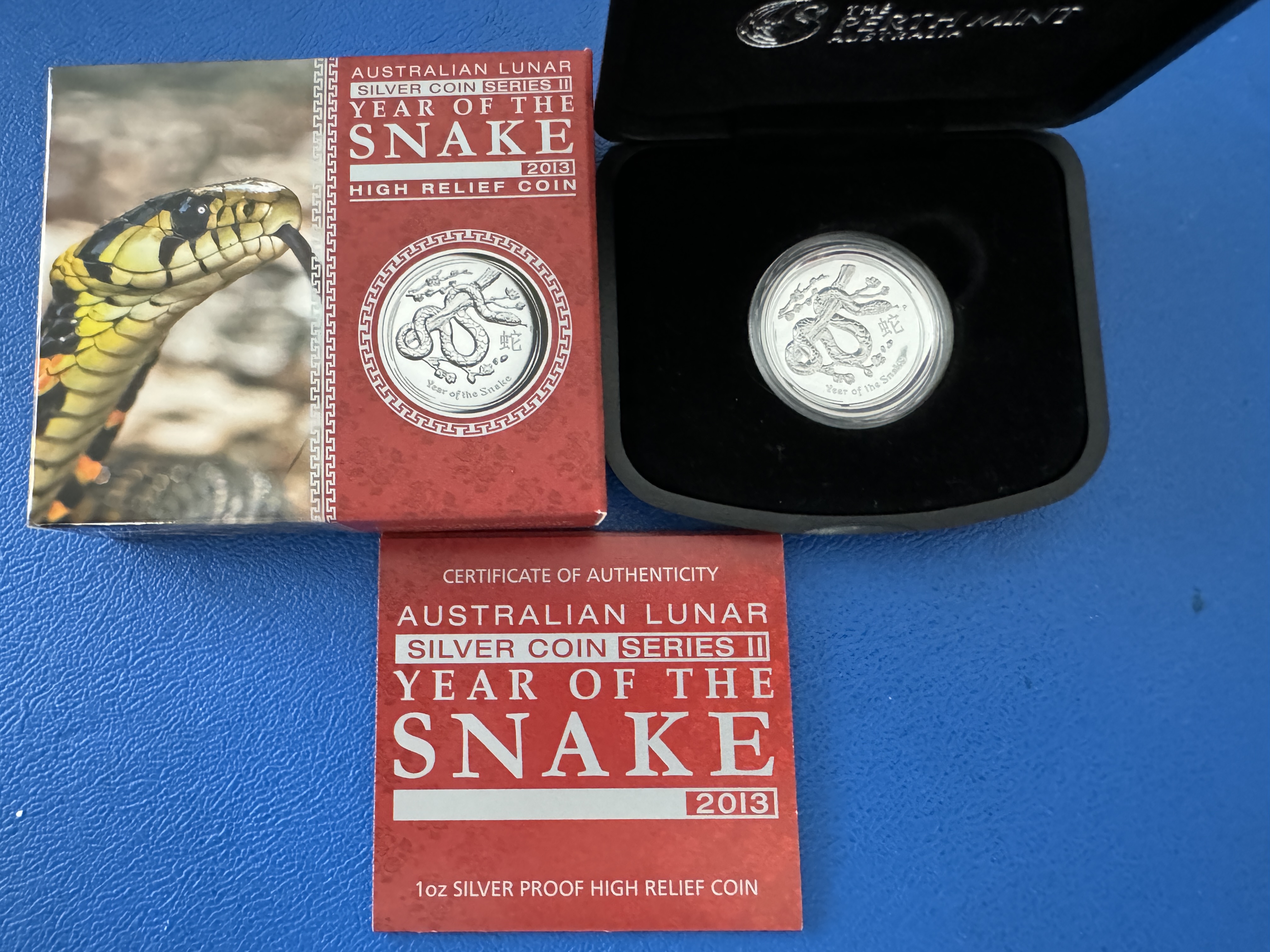 1 Oz 2013 Schlange Lunar II High Relief Silber in Polierte Platte inkl. Etui und Zertfikat