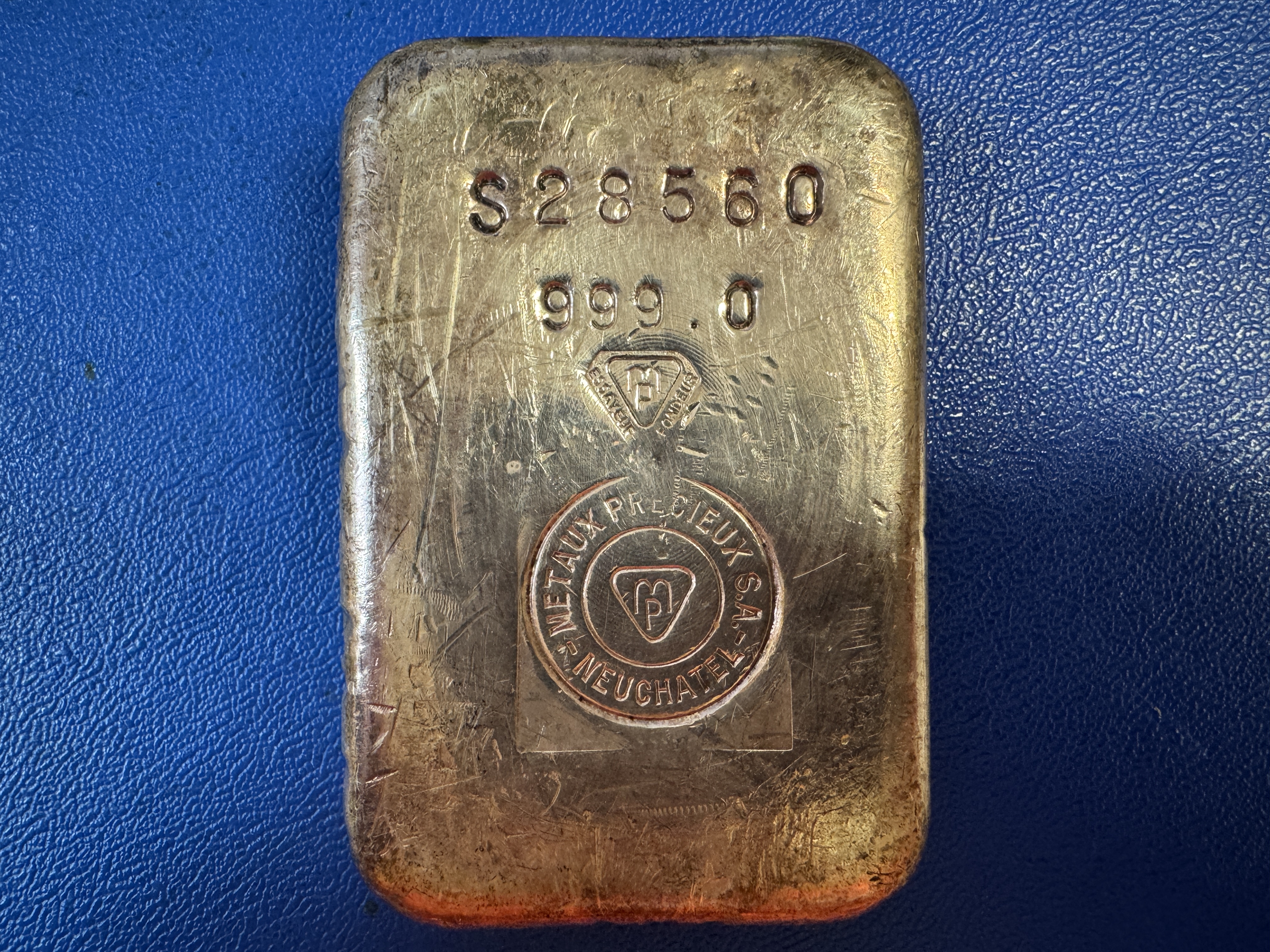 Frankreich Metaux Precieux S.A. Neuchatel Silberbarren 1 KG alte kleine Form