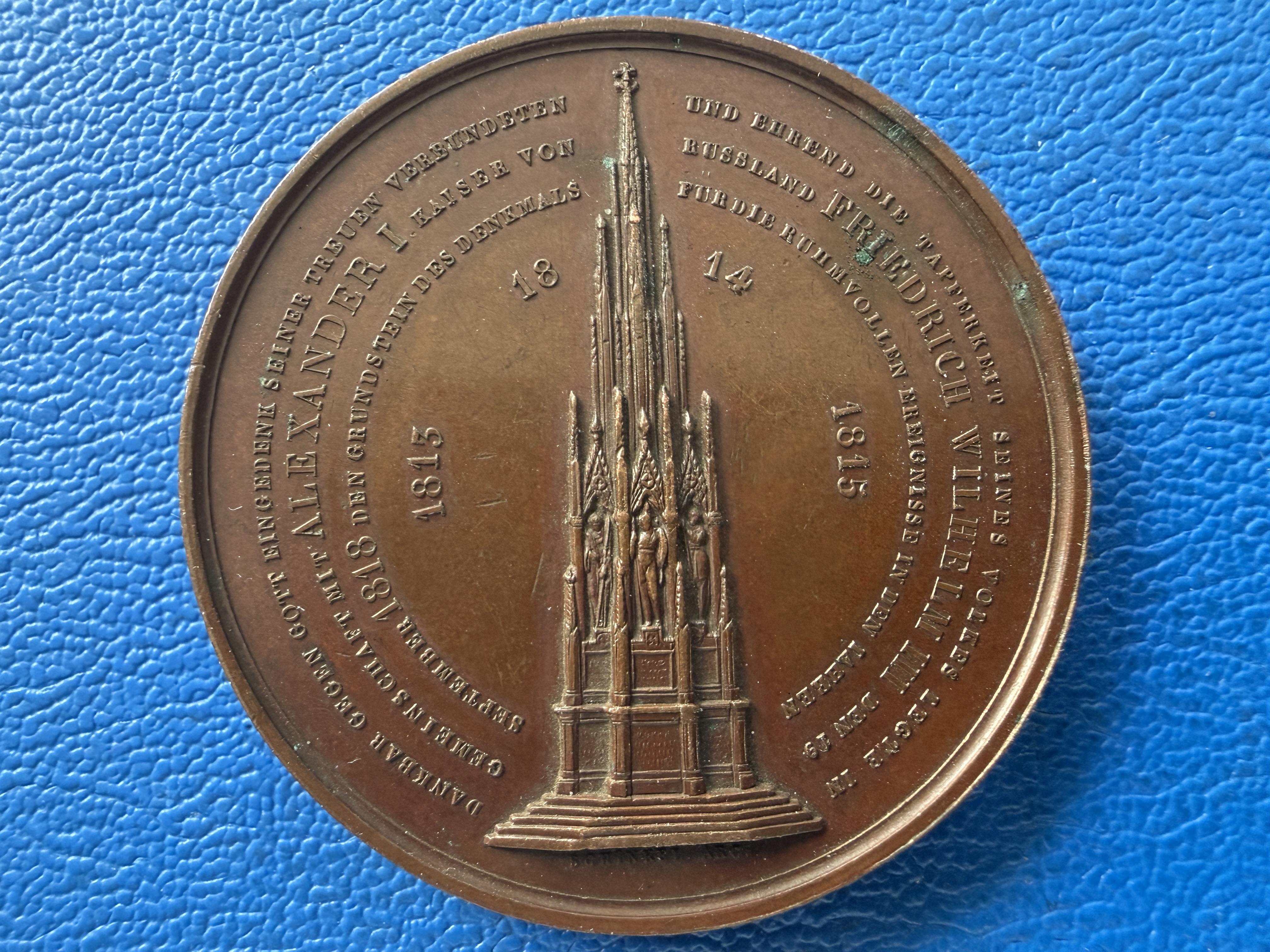 Preußen Königreich Bronzemedaille Preußen 1818 Grundstein Siegesdenkmal über Napoleon Berlin Kreuzberg Alexander I