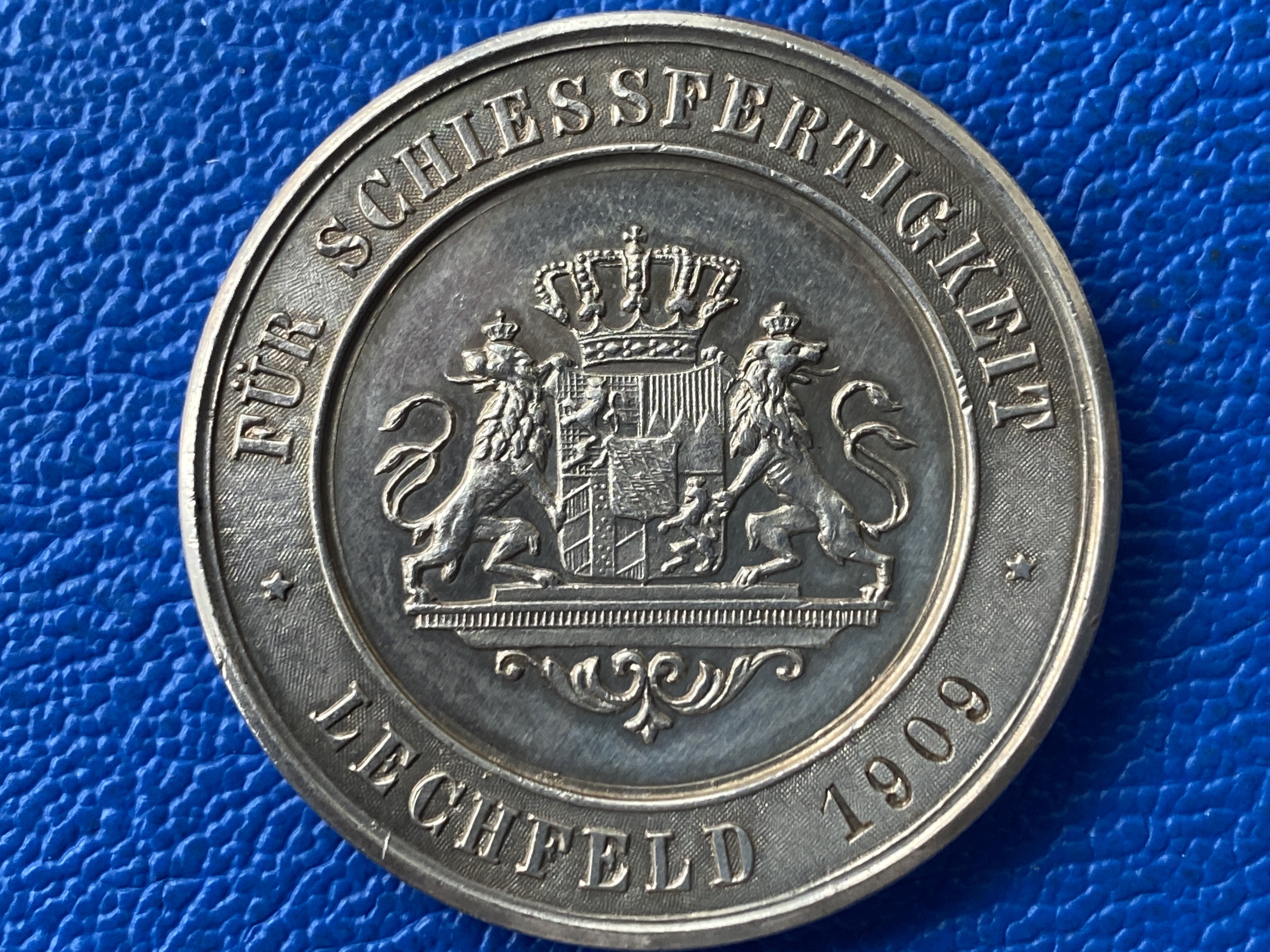 Bayern Silbermedaille 1909 Schießprämienmedaille Lechfeld Luitpold 1886-1909 Prachtstück!