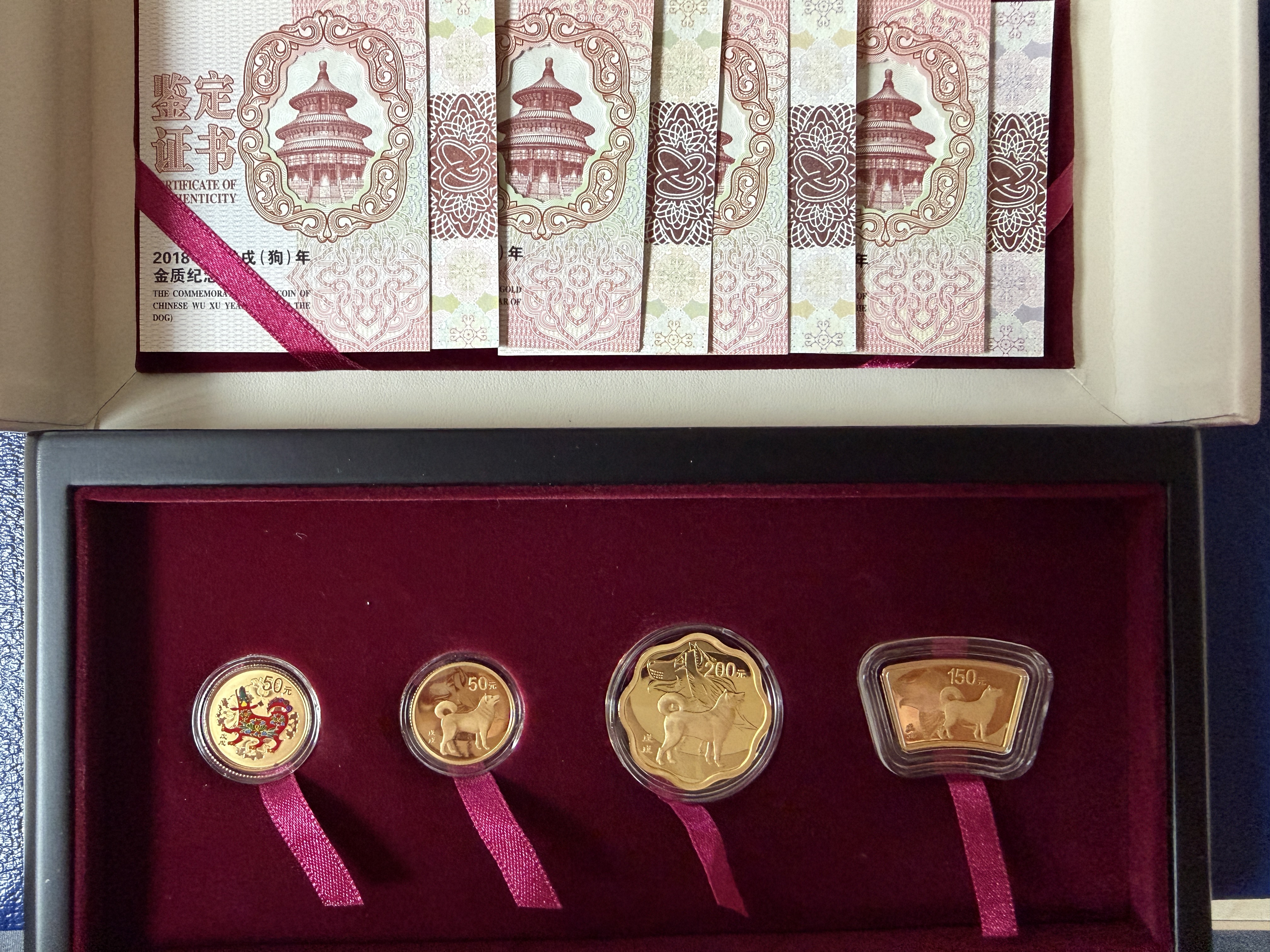 China Goldset Lunar Jahr des Hundes 2018 4 Coin Set in Prestige Box insg. 31g Feingold