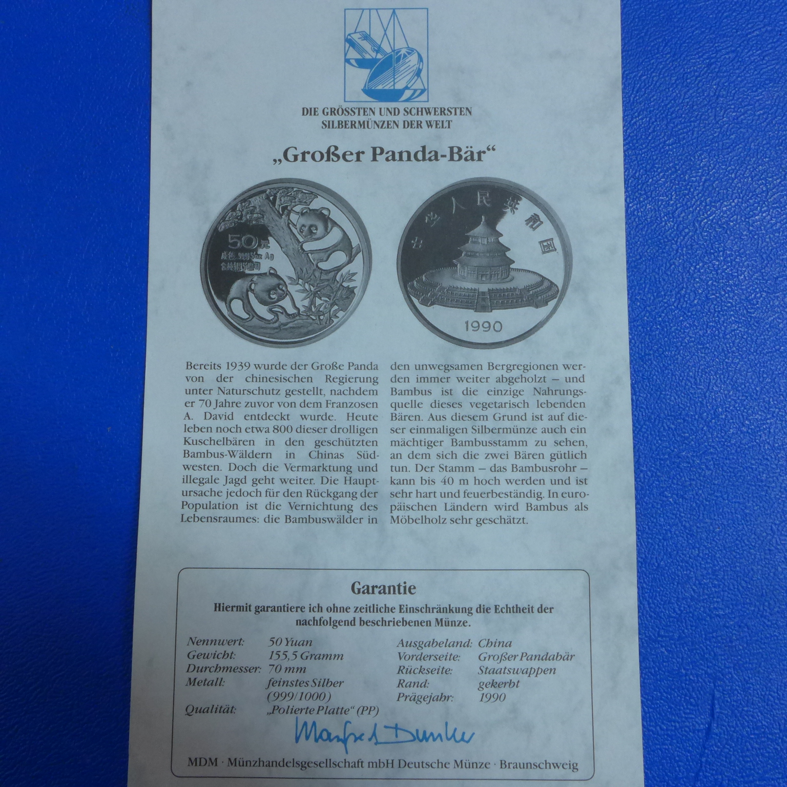 China 50 Yuan 1990 Panda 5 Oz Feinsilber inkl. orig. Kapsel + Zertifikat