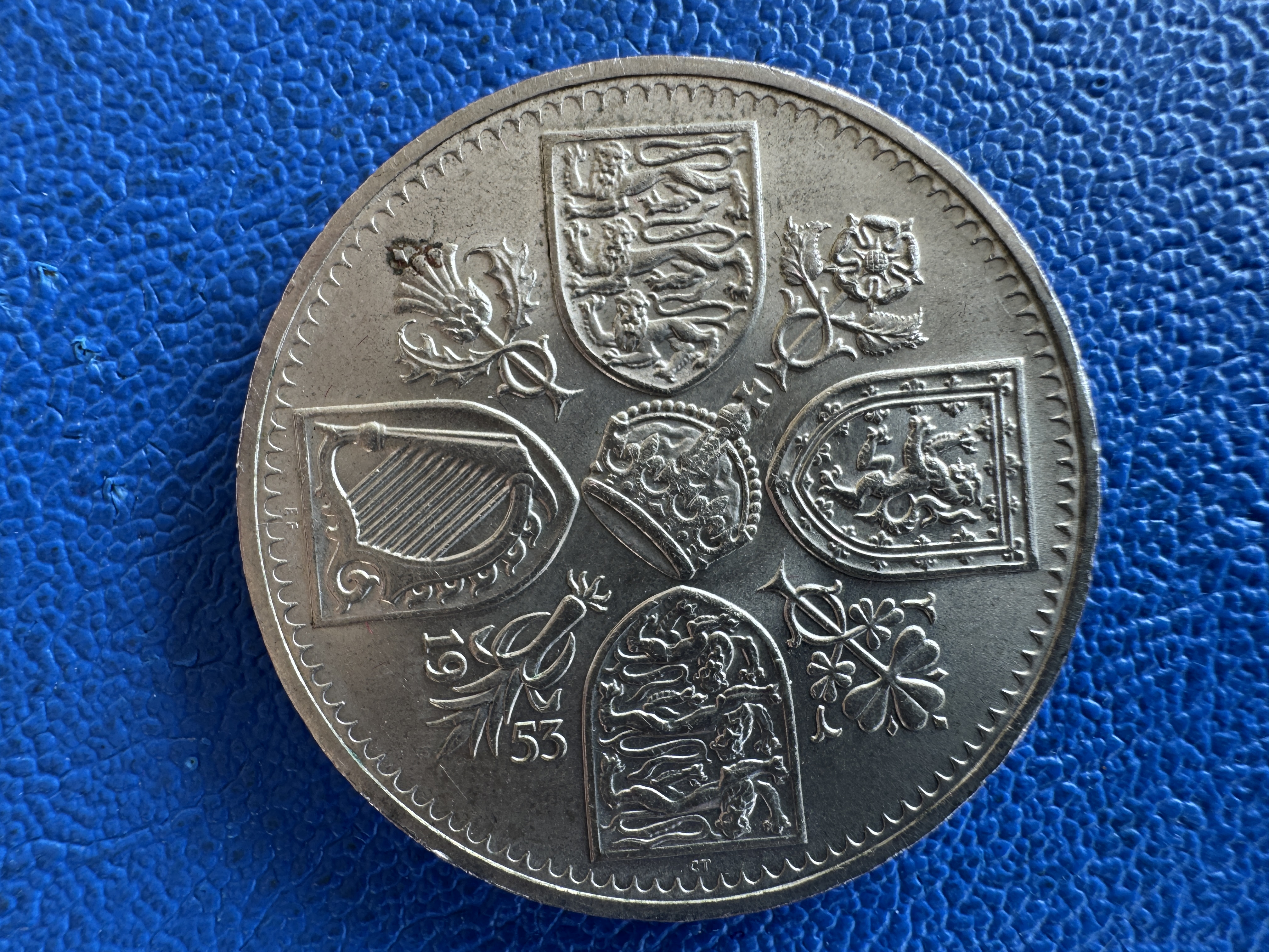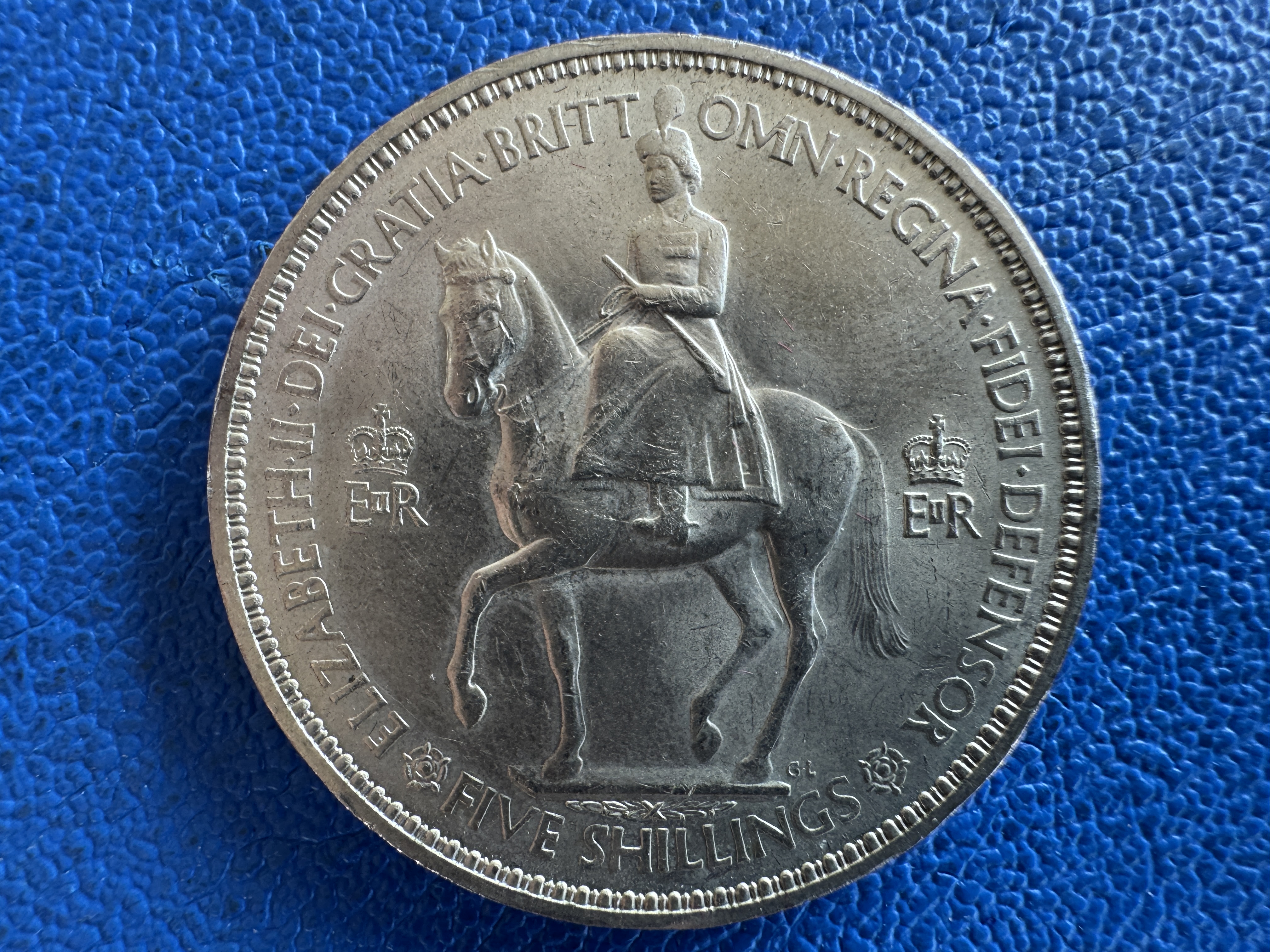 England 1 Crown (5 Shillings) 1953 Queen Mum auf Pferd