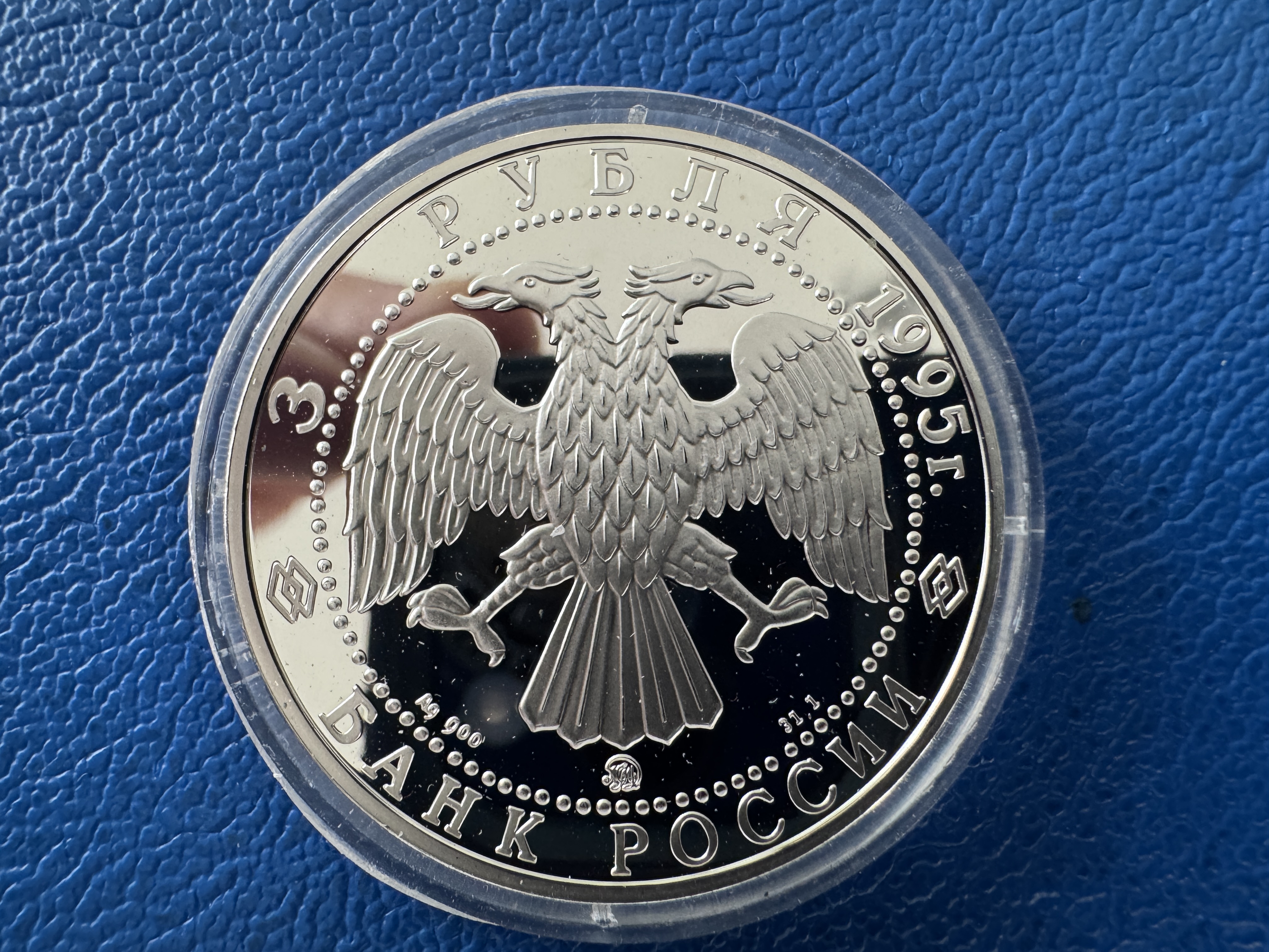 Russland 3 Rubel 1995 Goldenes Tor, Wladimir Silber in PP