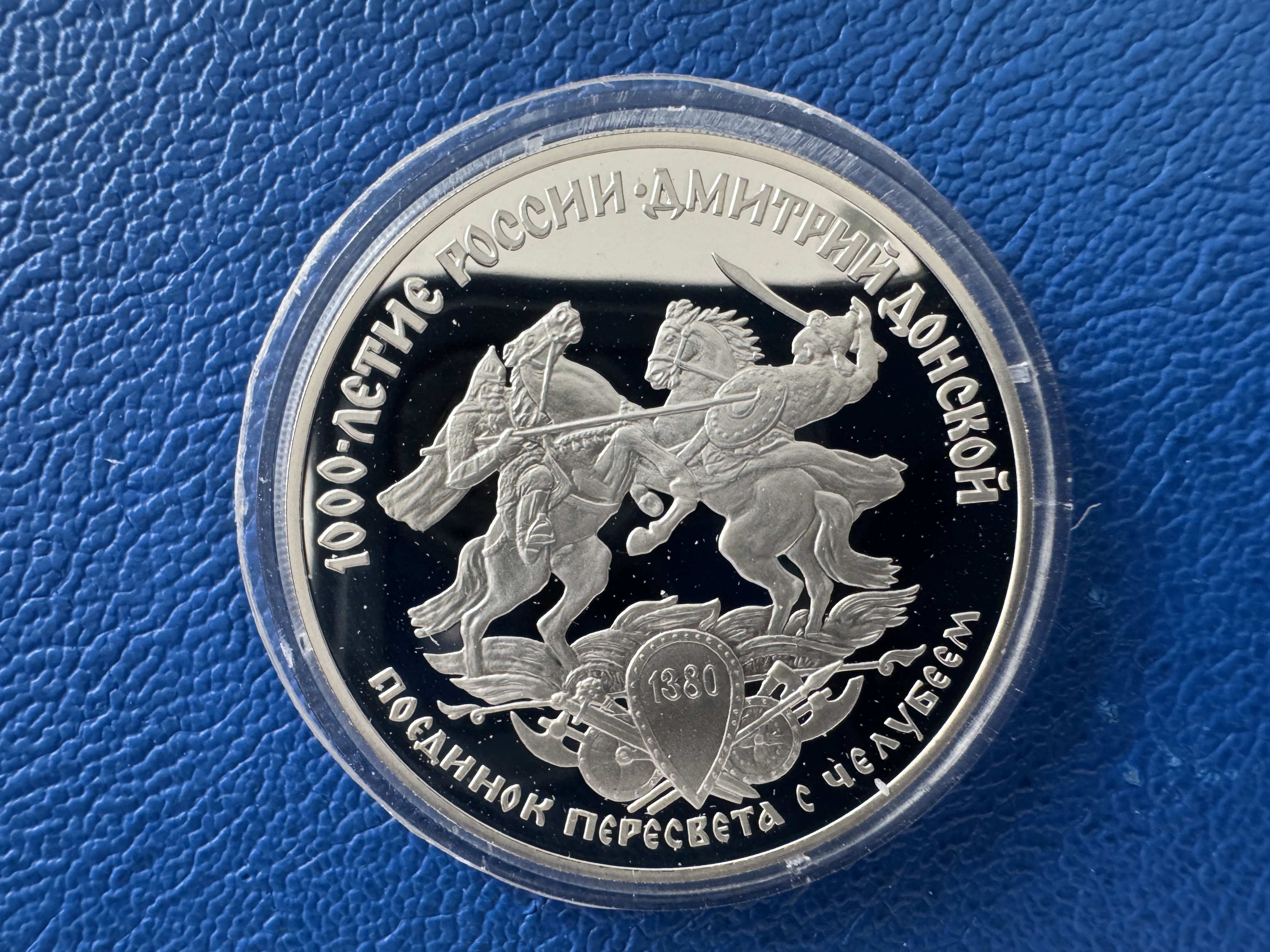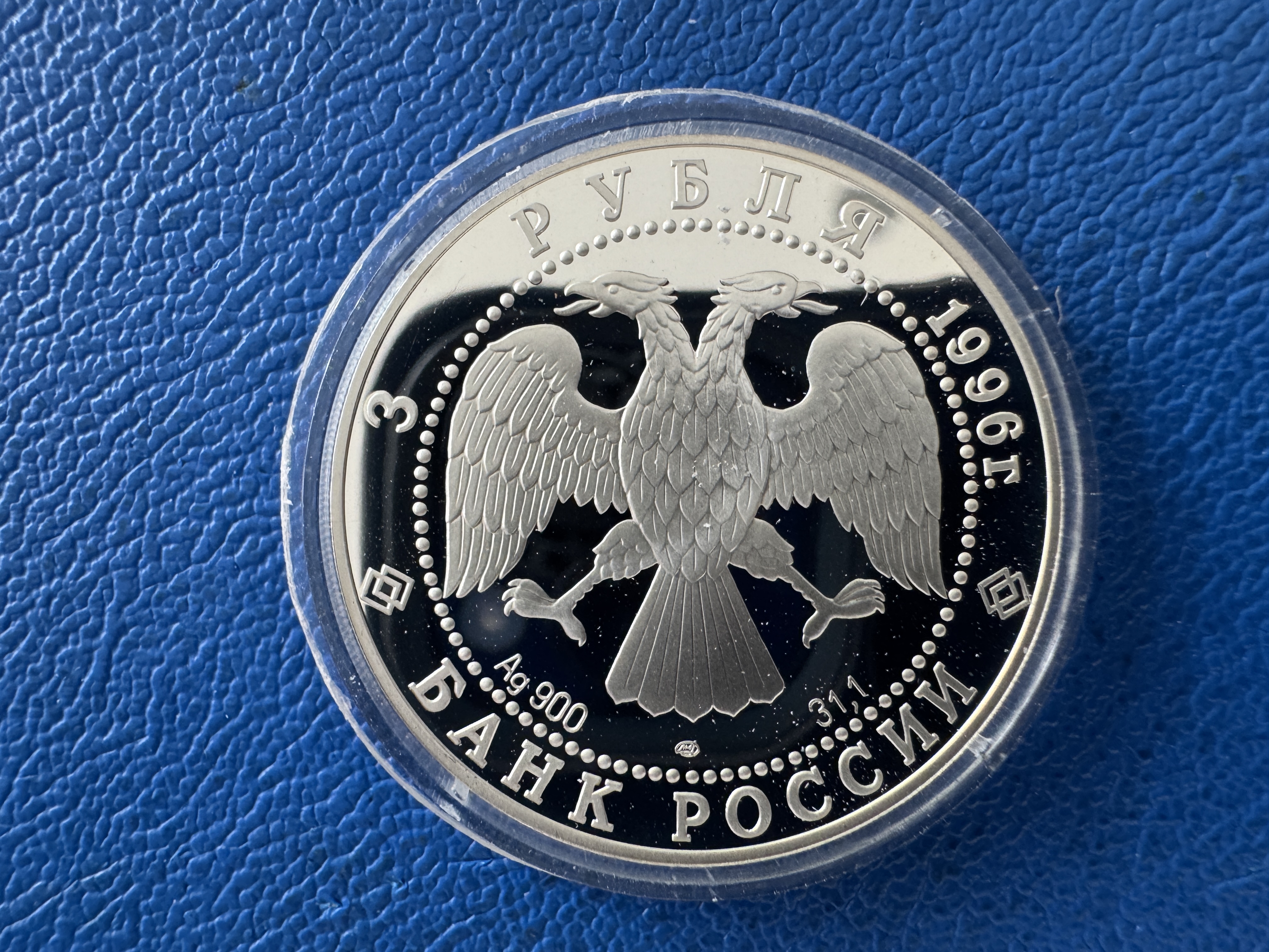 Russland 3 Rubel 1996 Schlacht von Pereswet mit Chelubej Silber in Polierte Platte