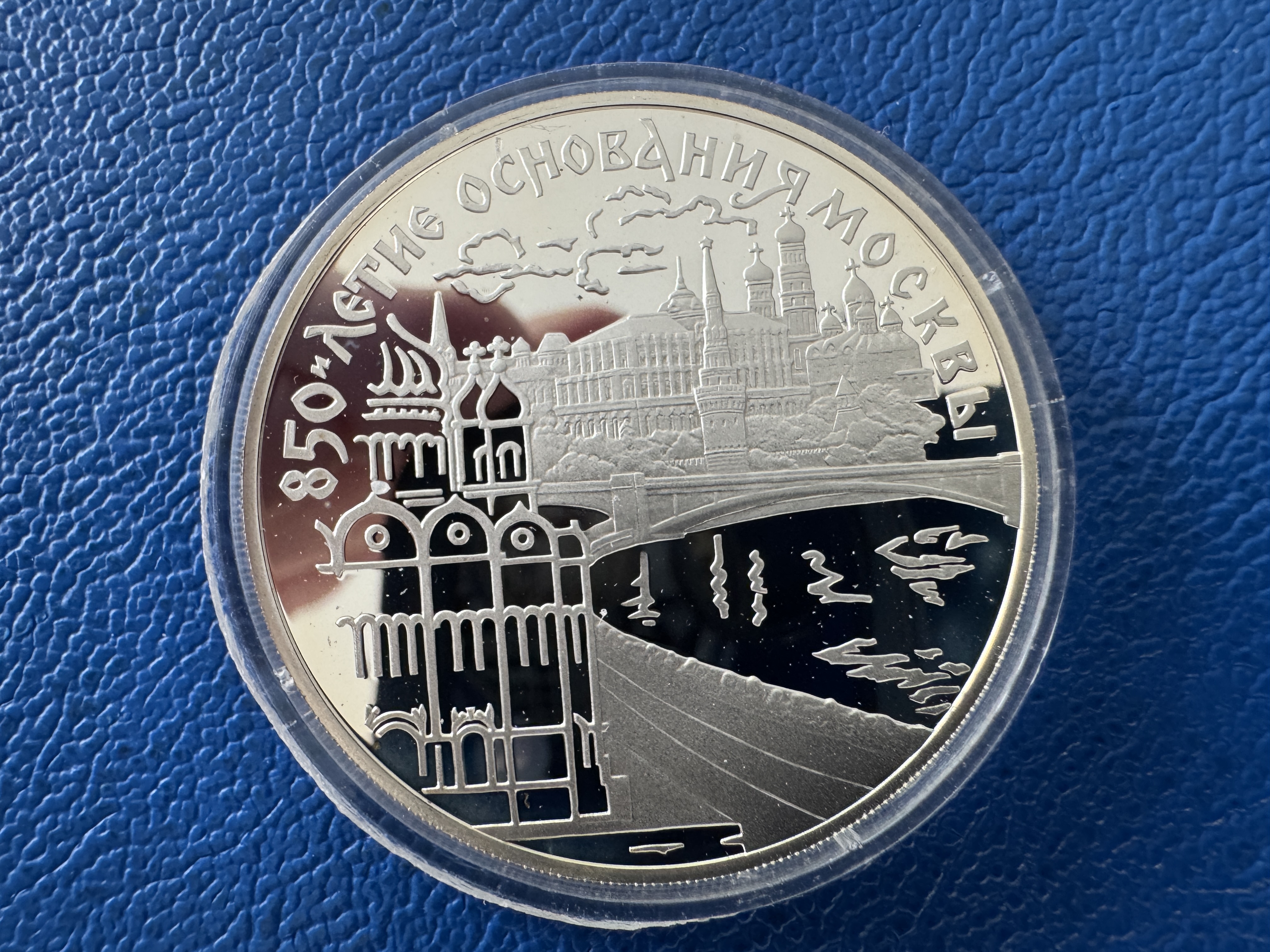 Russland 3 Rubel 1997 850 Jahre Moskau, Heilandskirche Silber in PP