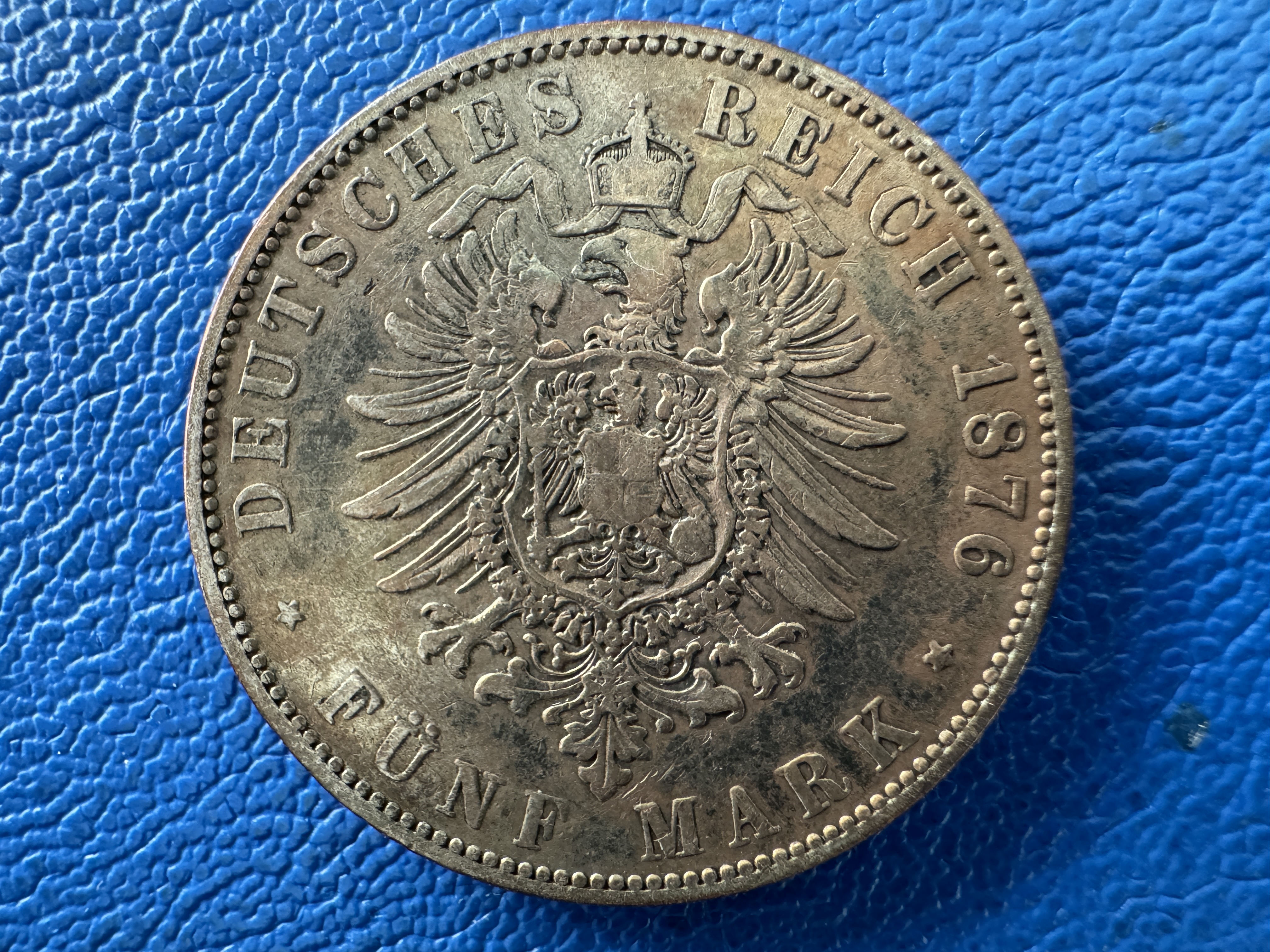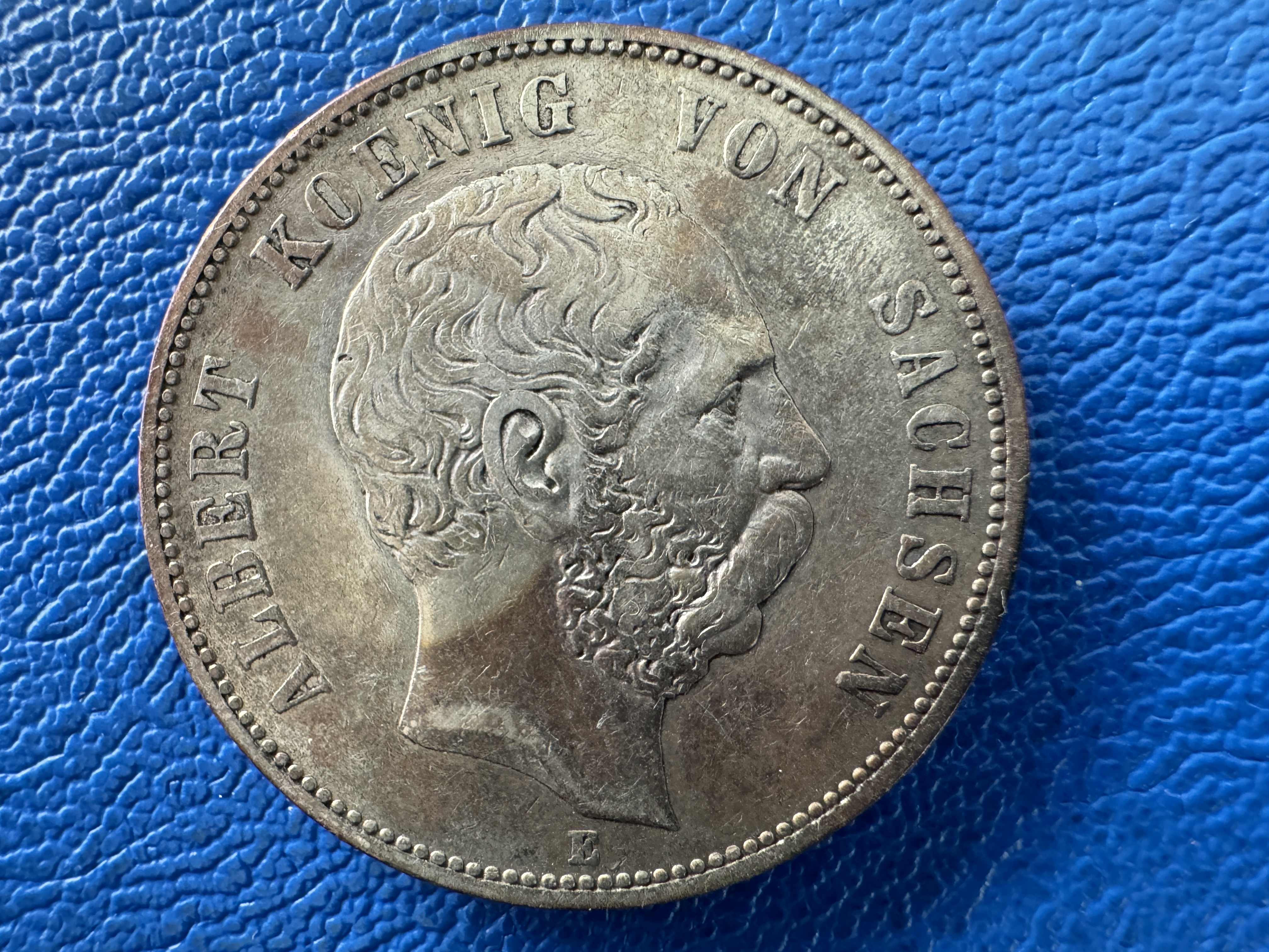 Sachsen 5 Mark 1876 E Albert Silber tolle Patina, Top Erhaltung Jaeger 122 (2)