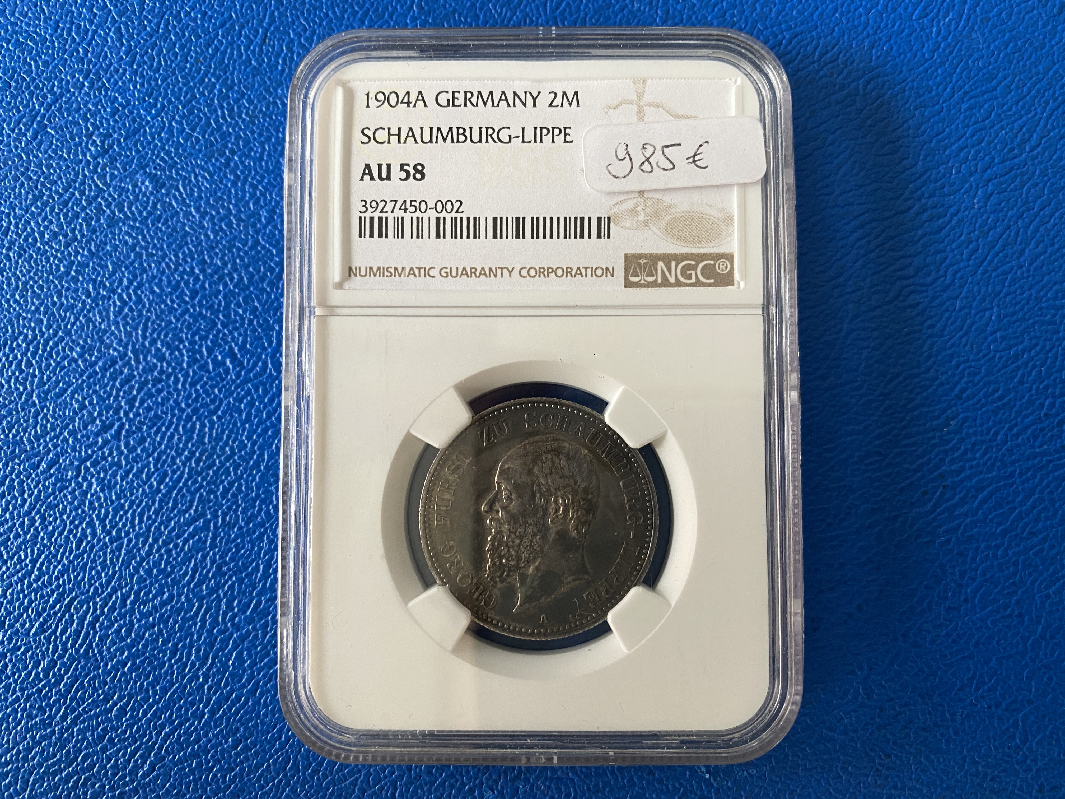Schaumburg-Lippe 2 Mark 1904 A Georg Silber NGC-Slap AU 58