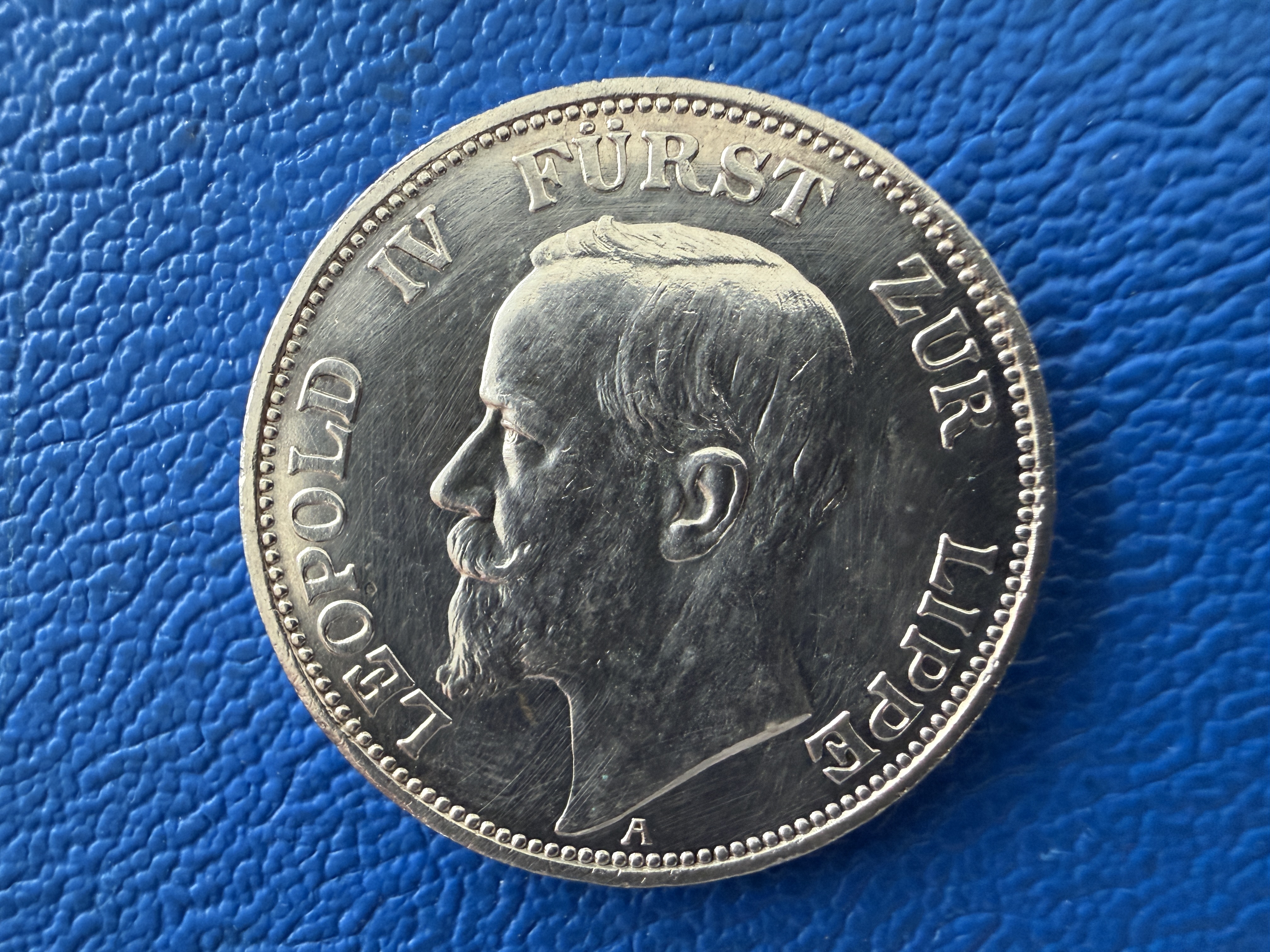 Lippe 3 Mark 1913 A Leopold IV Fürst zur Lippe J 79 Prachstück