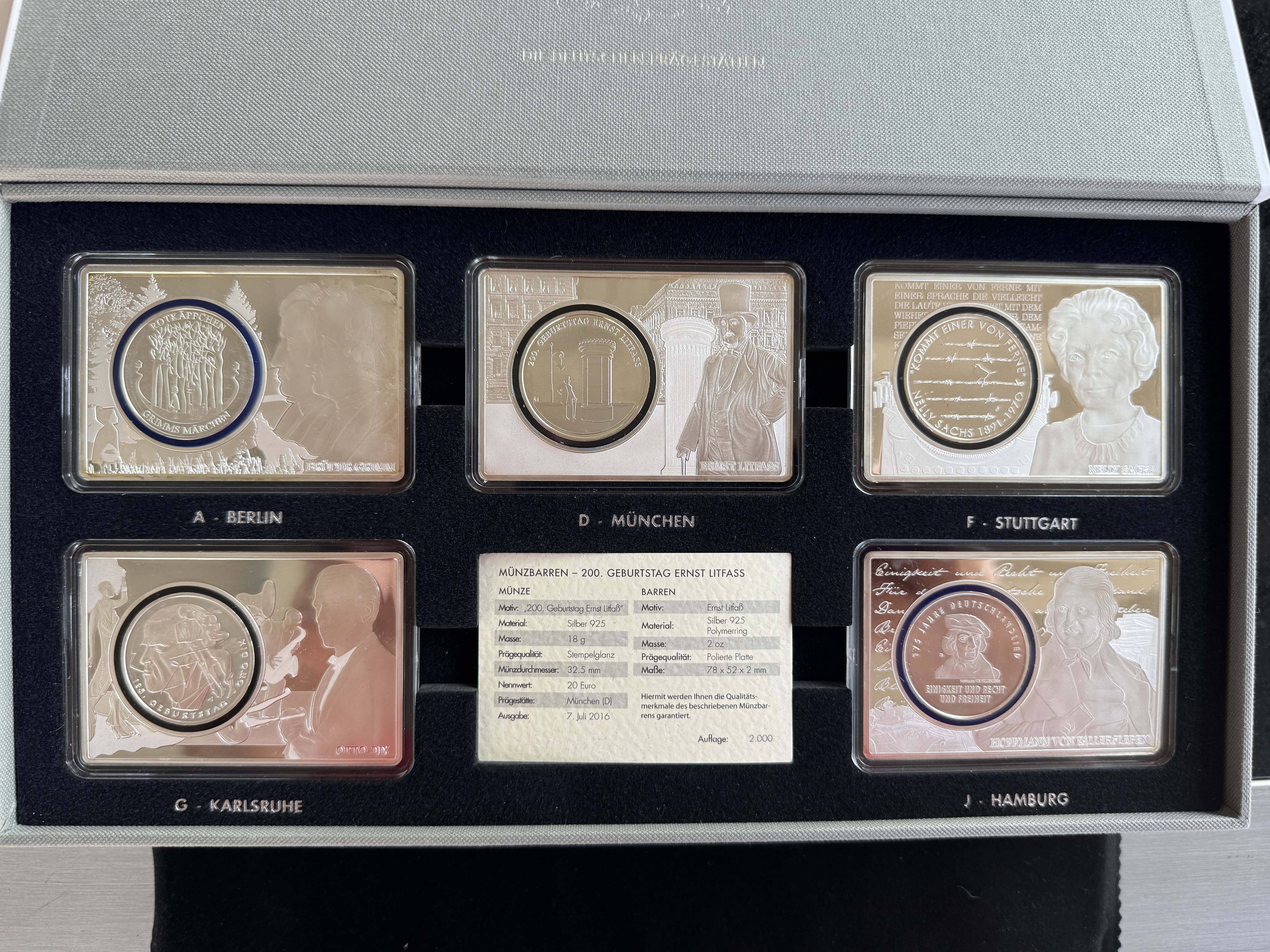 BRD 20 EURO 2016 Polymermünzbarren A D F G J insg. 370,925g Feinsilber in beleuchteter PrestigeBox