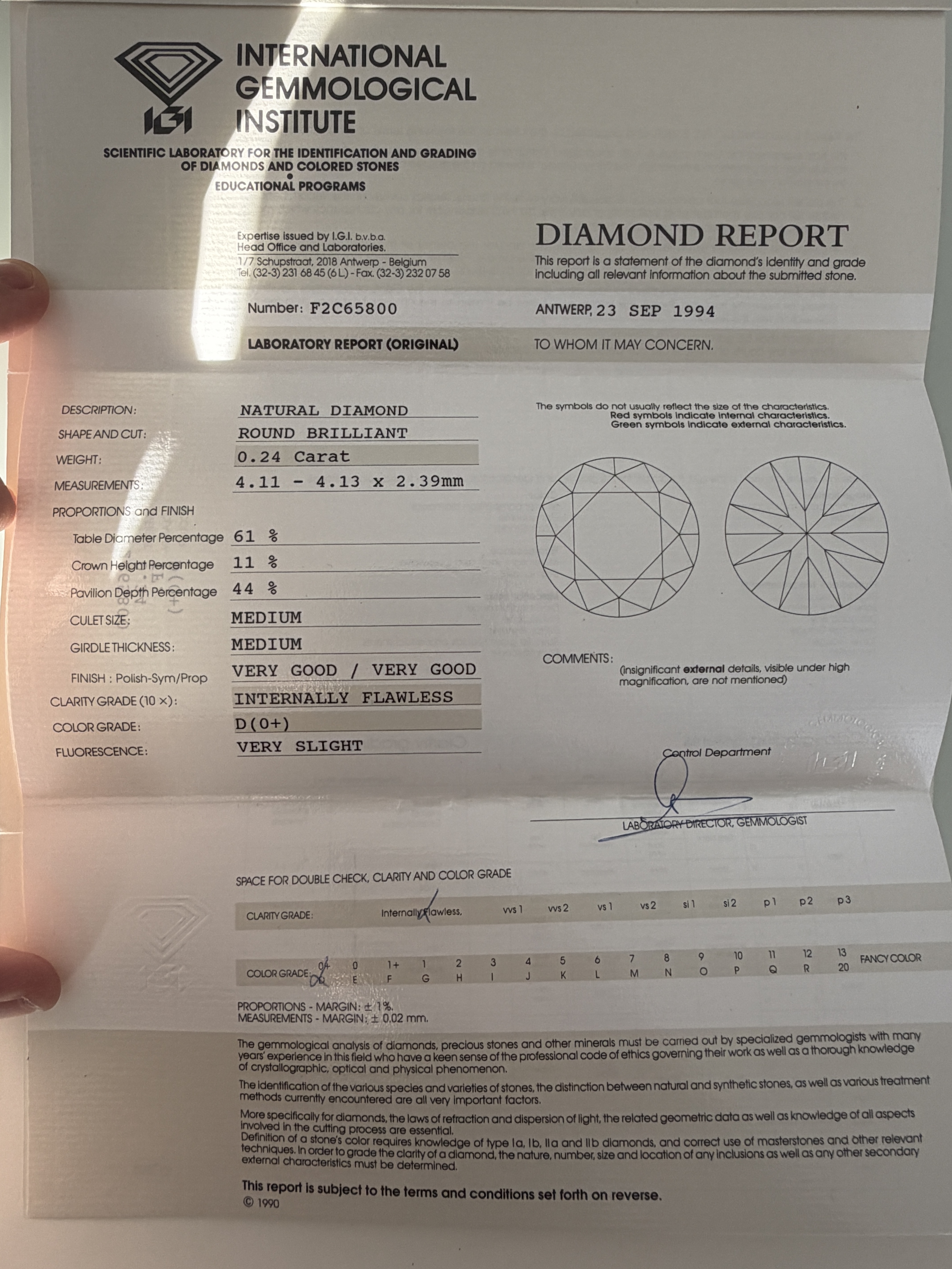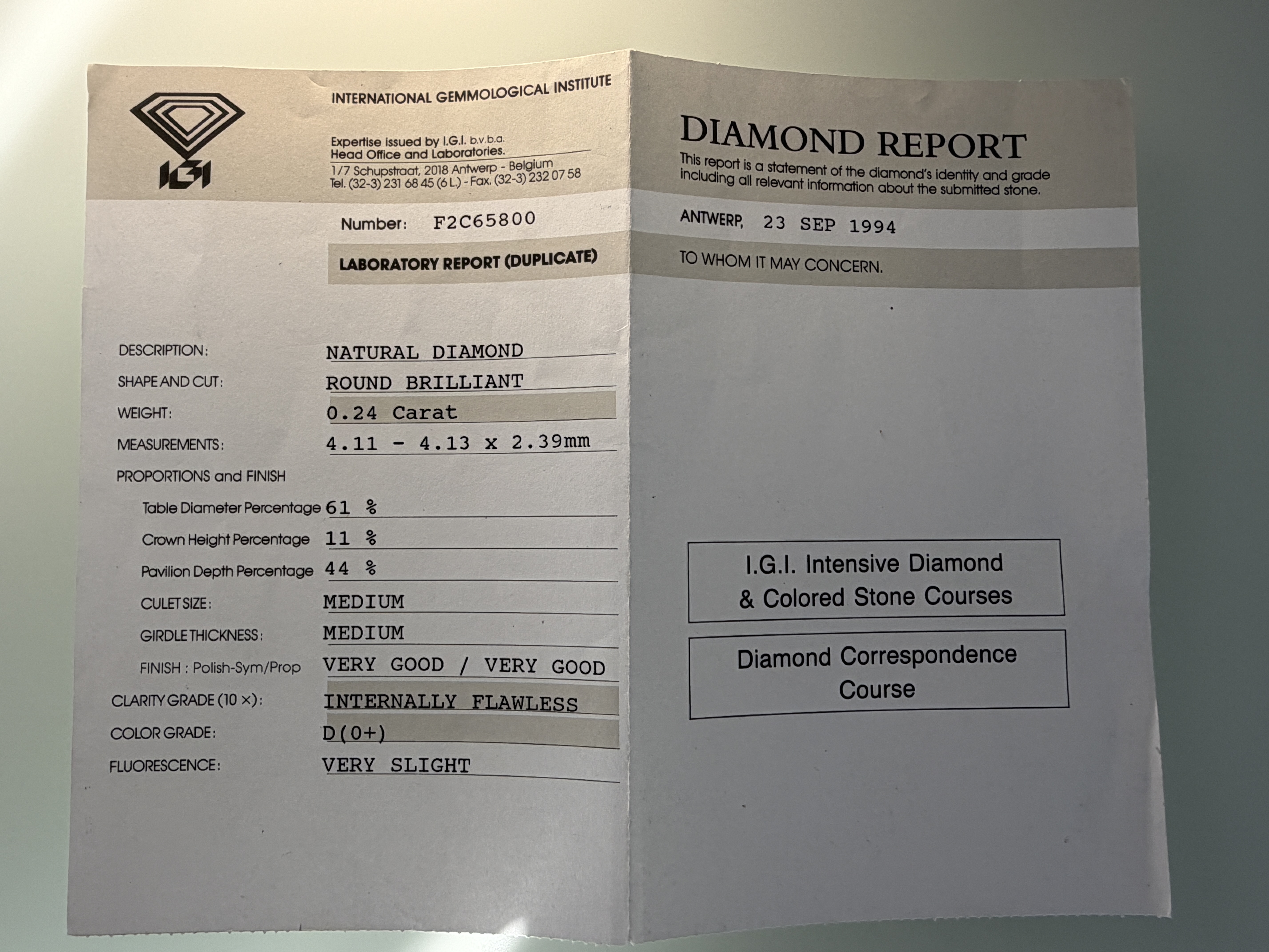 Zertifikat: International Gemmological Institute (IGI)